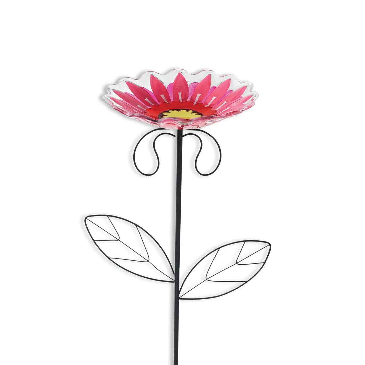 Glass butterfly feeder/bath includes sponge, nectar, special recipe card and Butterfly Tips Brochure. Comes with black powder coat stake with ground prongs for stability. Place among flowers in the garden or near a leaf mister to create a butterfly haven in your garden!